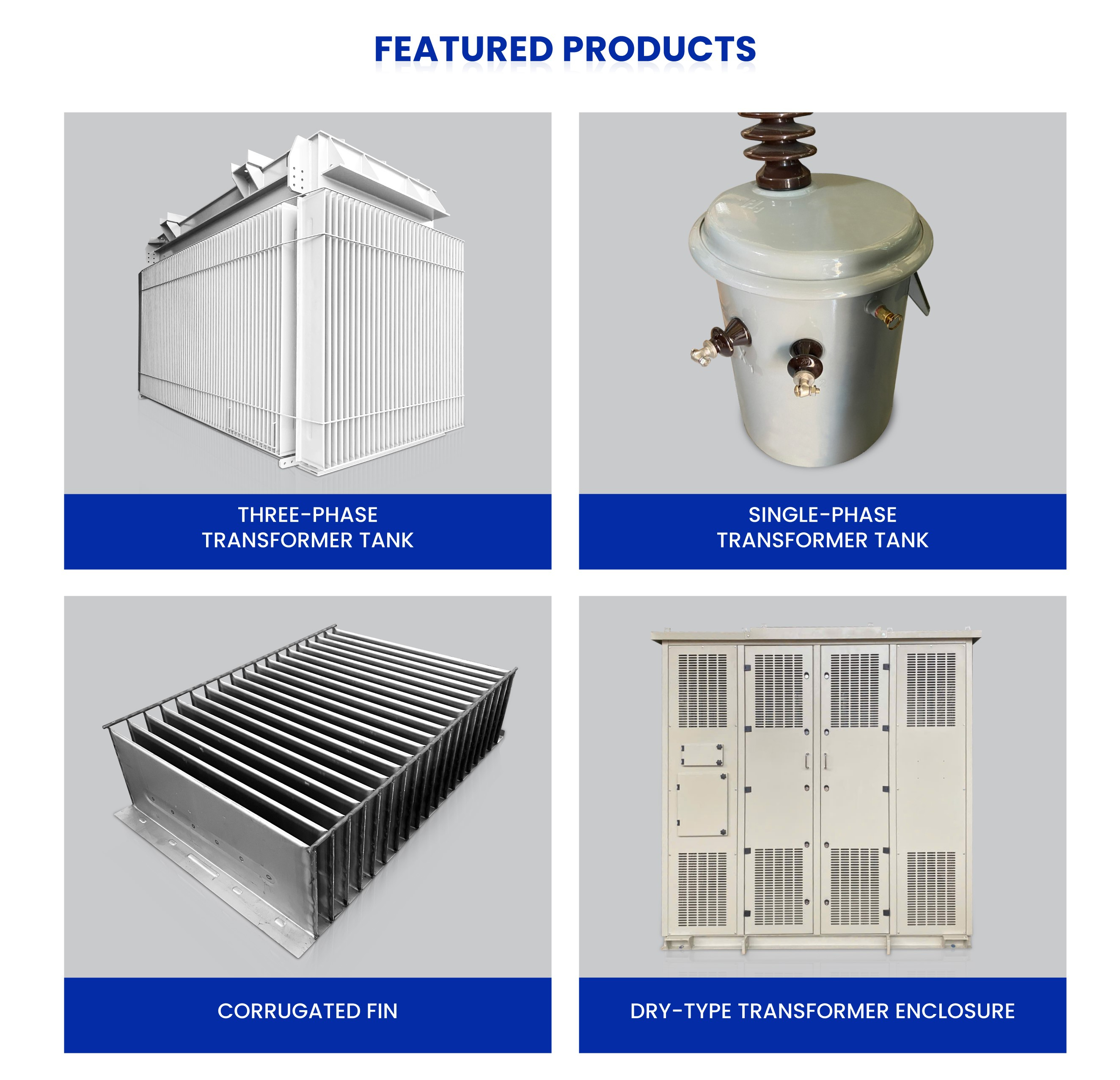 Prodotti principali: Carro armato trifase del trasformatore, carro armato del trasformatore di monofase, tipo asciutto recinzione del trasformatore, aletta ondulata